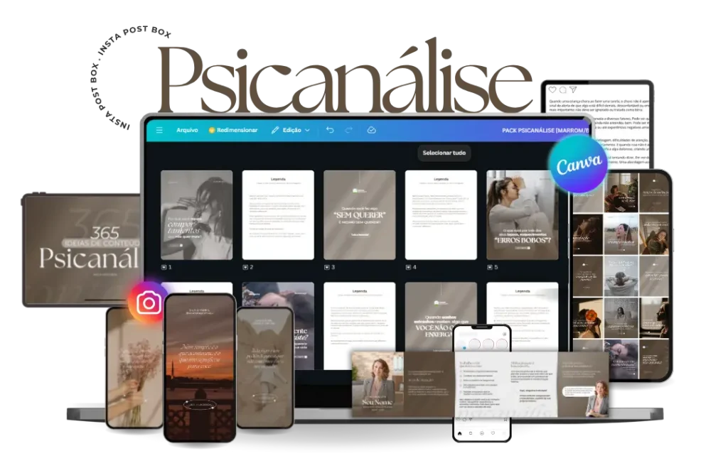 Todo conteúdo é 100% editável no Canva gratuito e foi desenvolvido especialmente para você, psicanalista, que deseja ter um perfil que atrai pacientes todos os dias.