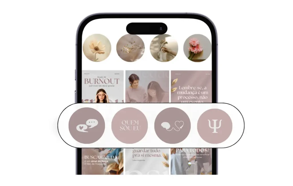 Os destaques são uma das primeiras coisas que os visitantes do seu perfil veem. Com capas personalizadas, você vai organizar seus melhores stories e reforçar sua identidade visual.