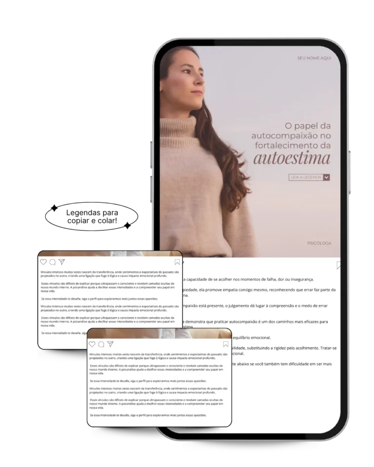 Posts com frases profundas, impactantes e estrategicamente selecionadas para gerar identificação, provocar reflexão, criar conexão emocional com seu público e mostrar que você entende o que ele sente.