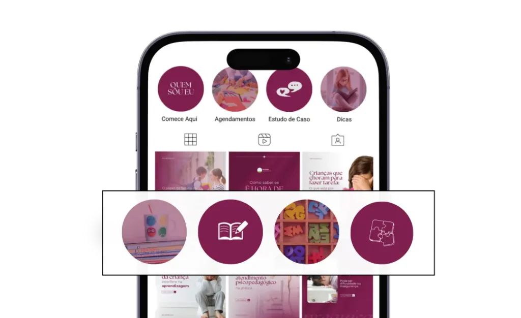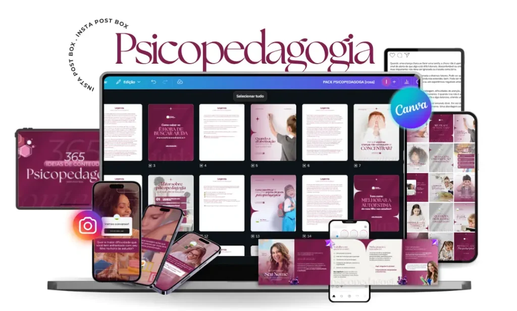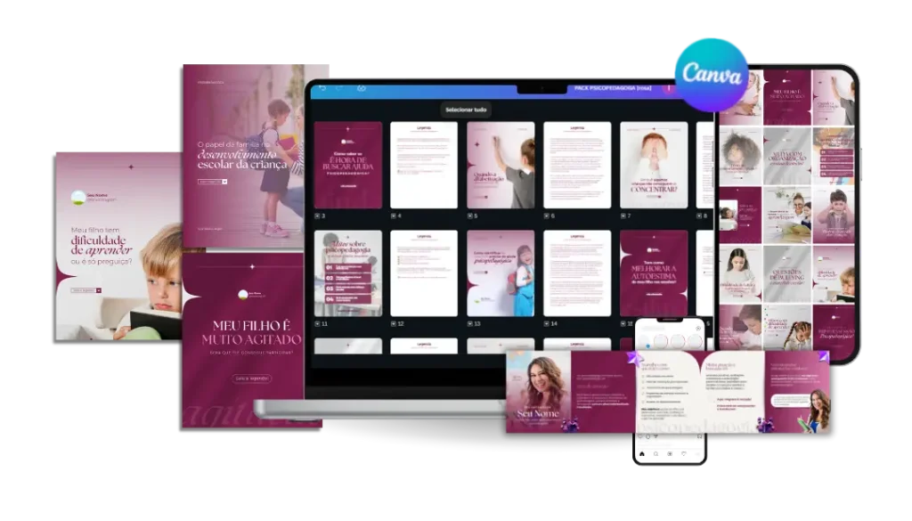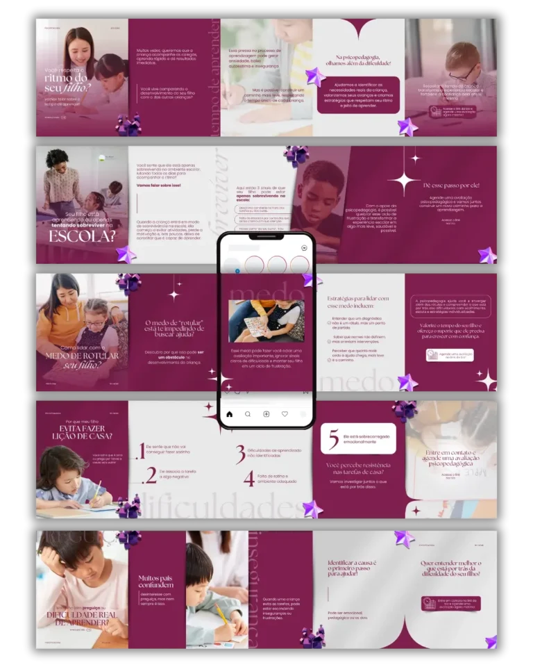 Todo conteúdo é 100% editável no Canva gratuito e foi desenvolvido especialmente para você, psicopedagoga, que deseja ter um perfil que atrai pacientes todos os dias, além de destacar a profissional incrível que você é!