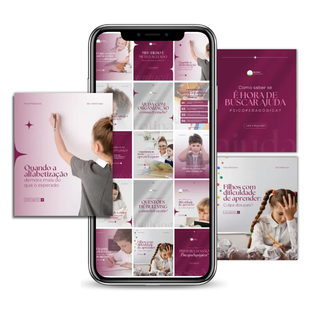Todo conteúdo é 100% editável no Canva gratuito e foi desenvolvido especialmente para você, psicopedagoga, que deseja ter um perfil que atrai pacientes todos os dias, além de destacar a profissional incrível que você é!