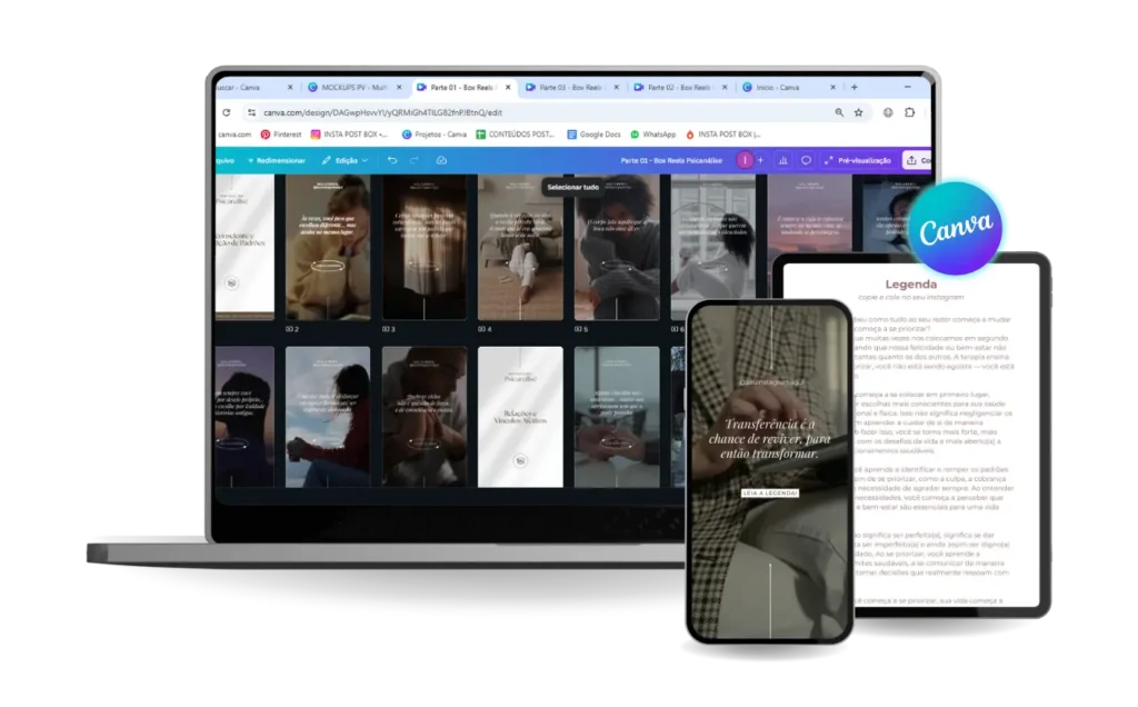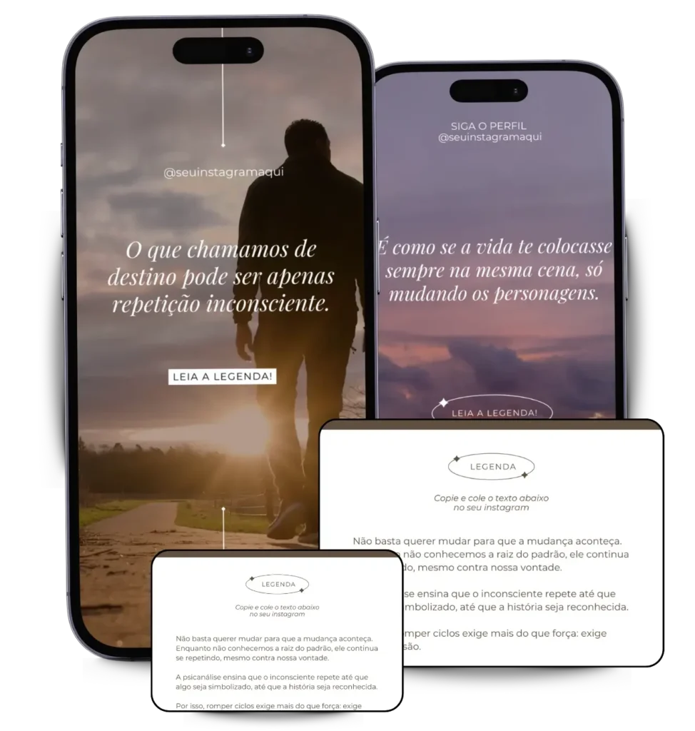 Todo conteúdo foi pensado especialmente para psicanalistas que querem crescer no instagram sem precisar gravar vídeos aparecendo.